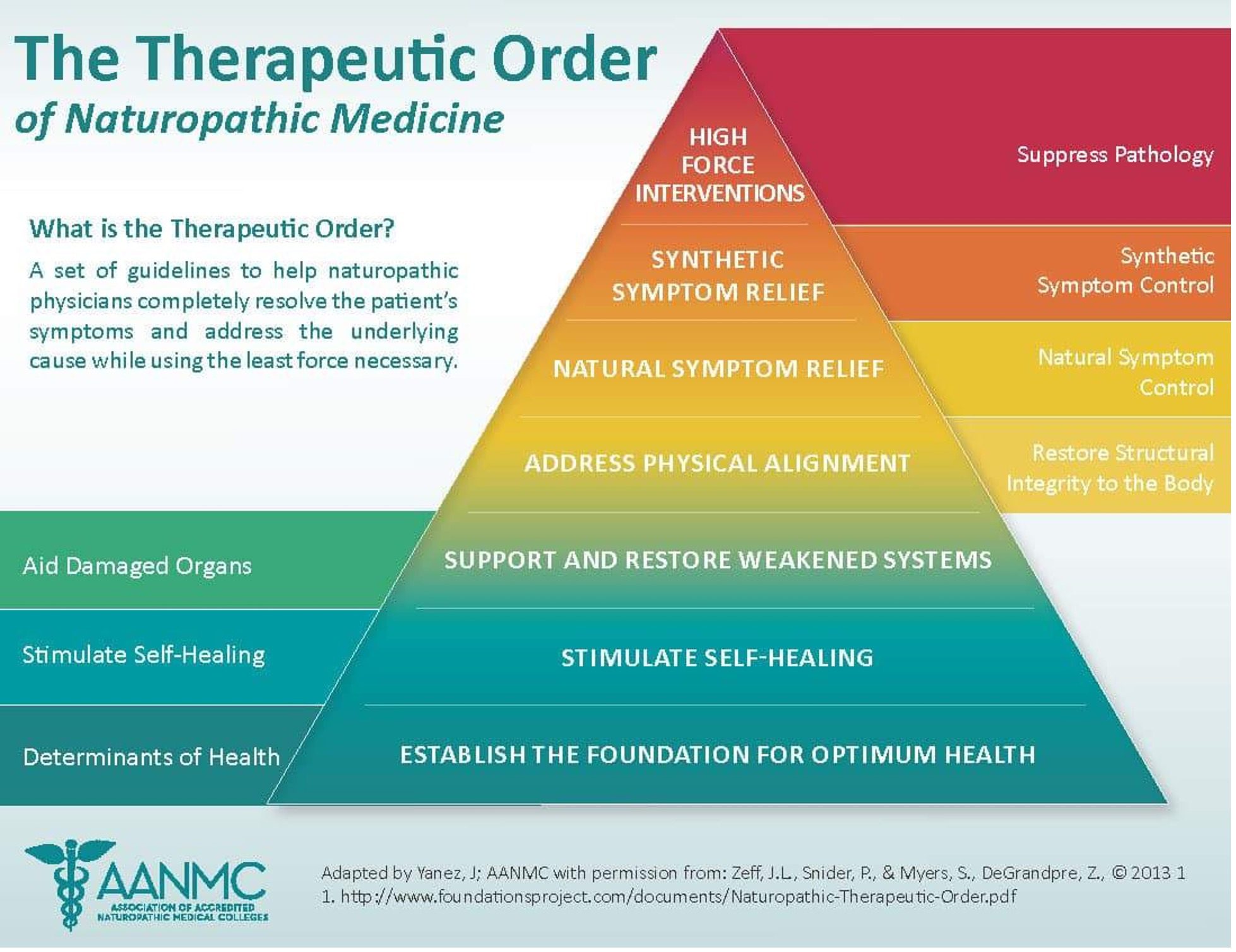 “A common question for those who have not visited a naturopathic doctor before, is how ND practice is different from what they might be used to in conventional models. The Therapeutic Order guides how the naturopathic principles are applied, and is based on the idea that the human body possesses an inherent drive to heal itself. It posits that the least amount of force be employed in order to promote gentle, safe and long-lasting health and well-being. The Therapeutic Order characterizes the natural progression of naturopathic therapeutic recommendations to maximize patient benefit and reduce the potential for damage or harm. Naturopathic care ultimately focuses on the individual and what is best for them at that moment in time.”